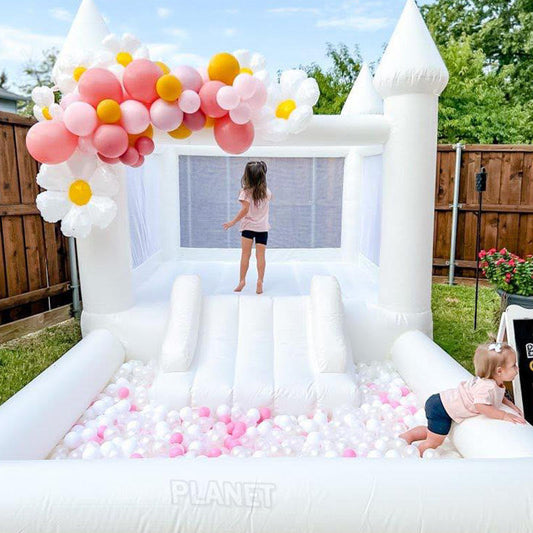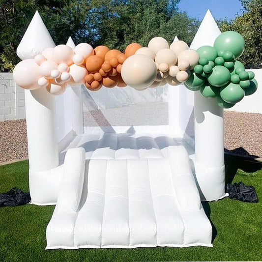 Inflatable White Bounce House Professional Jumping Bouncy Castle Bouncer for Wedding Party with Air Blower Balloons Carrying Bag Repair kit
