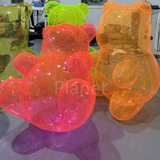 4FT Transparent Colored PVC Inflatable Bear – With Air Pump, Great for Advertising, Party Decorations and Events