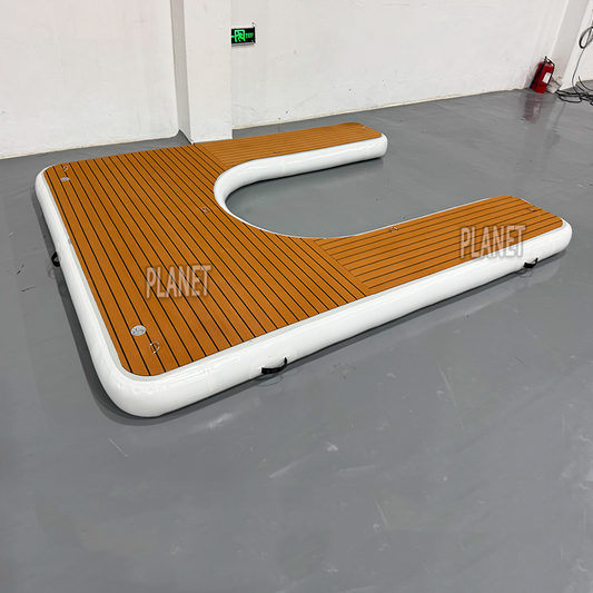 U-Shape Inflatable Jet Ski Dock–Heavy-Duty Floating Platform for Lake, Motorboat & Yacht Parking with Air Pump(3*2.4m/9.84*7.87ft))