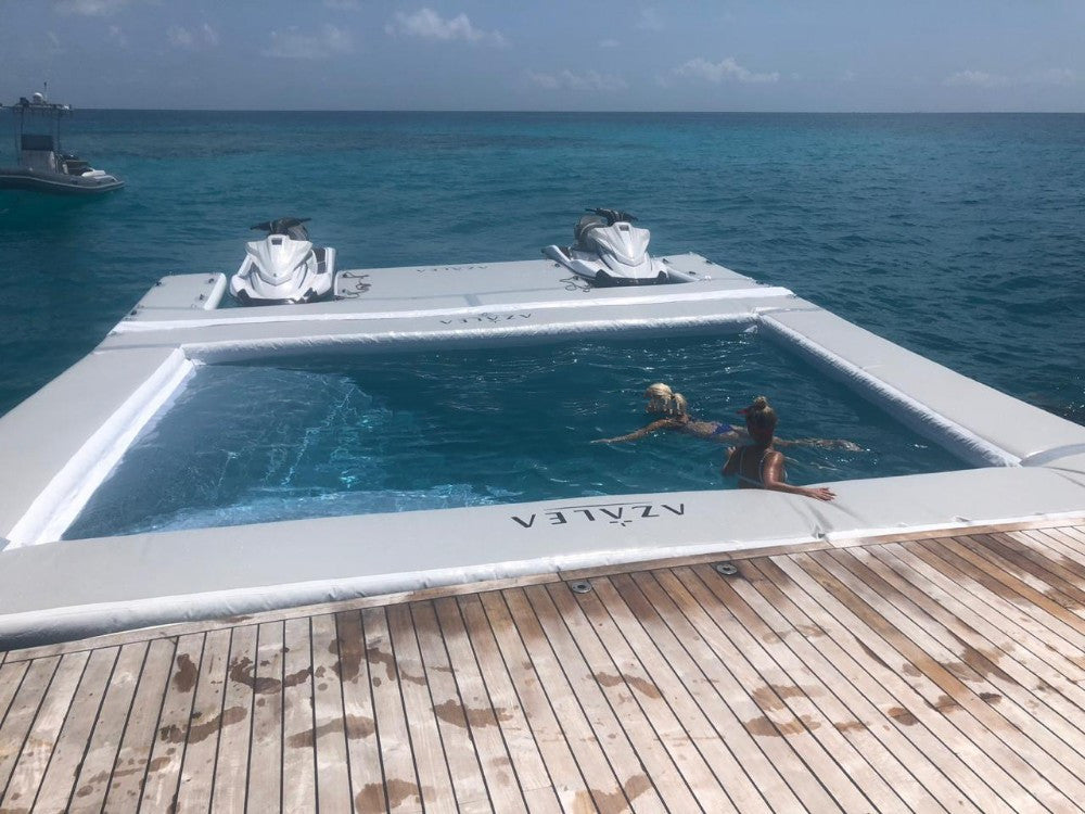 The portable netted swim Lap Pool is ideal for swim training at the beach, lake, river, and boat or at your home waterfront shoreline, dock or jetty.