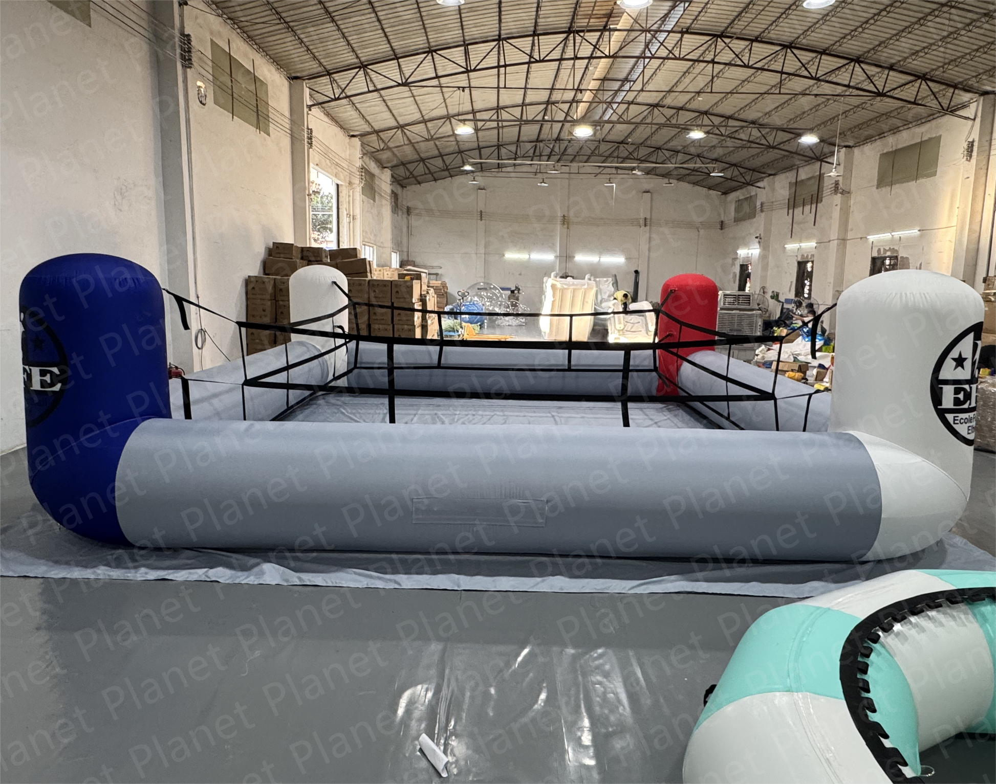 Portable interactive inflatable boxing ring for safe wrestling and boxing games for parties and events