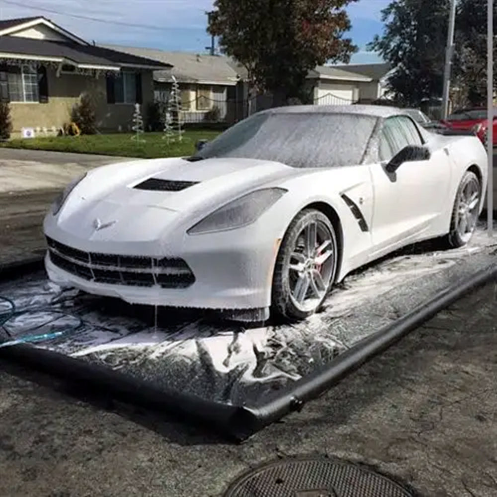 - Inflatable carwash mats are ideal for collecting and controlling water, preventing it from going down the drain and allowing it to be recycled, making a small contribution to environmental issues.