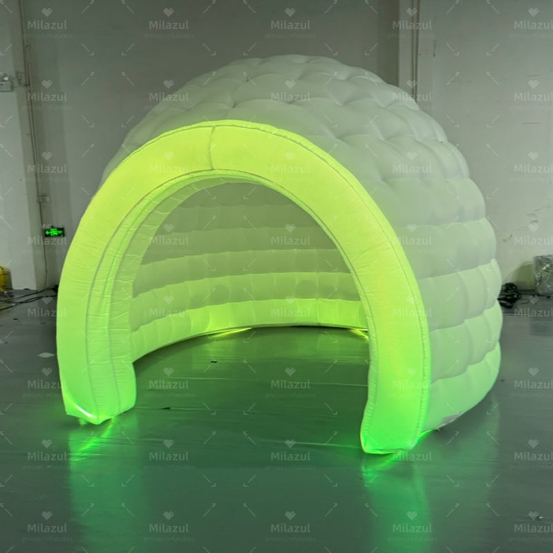 Outdoor Portable Inflatable Igloo Dome Tent with LED Light & air blower 10ft dia. Inflatable Shelter Igloo Marquee for Party, Wedding, Camping