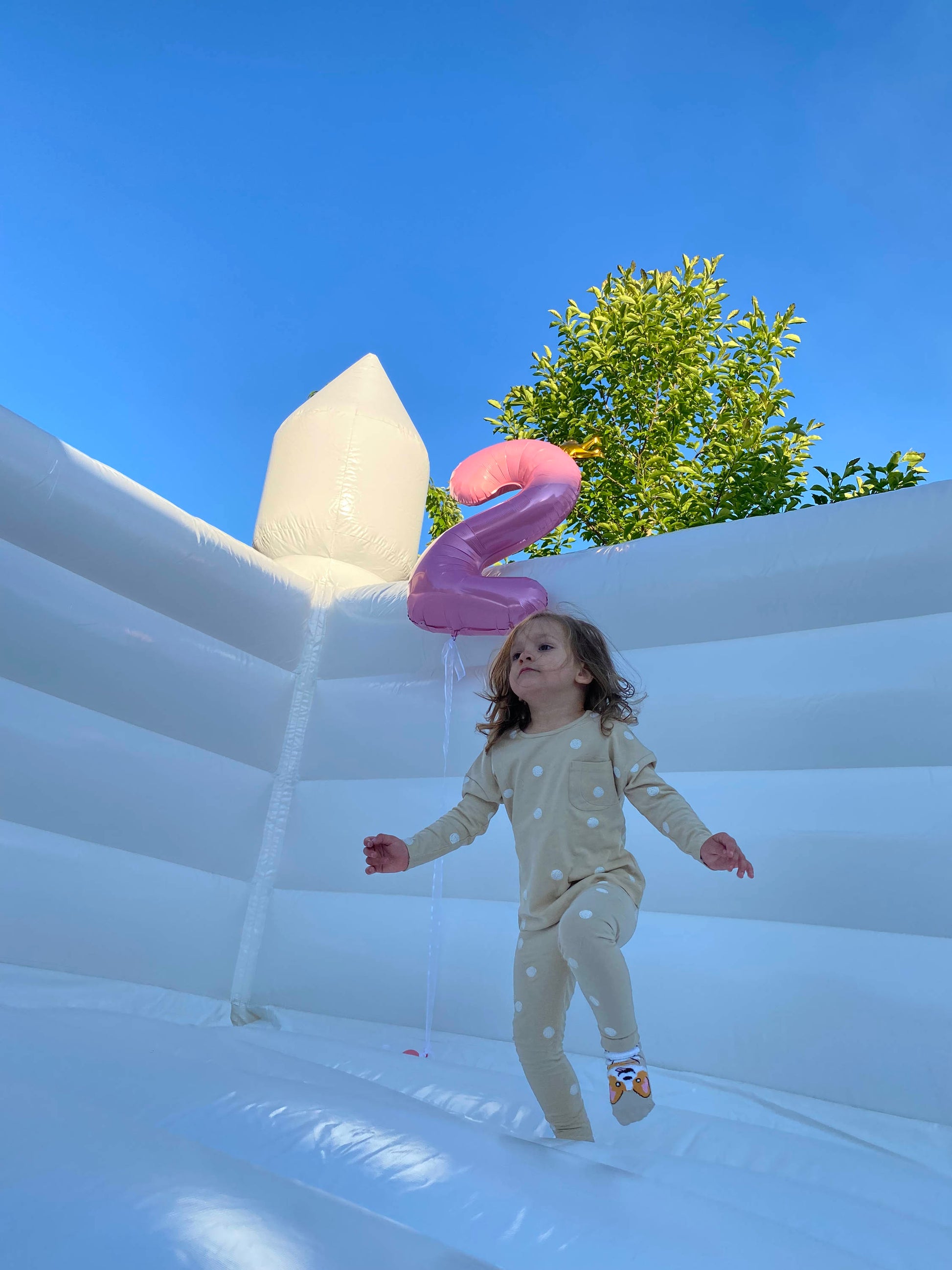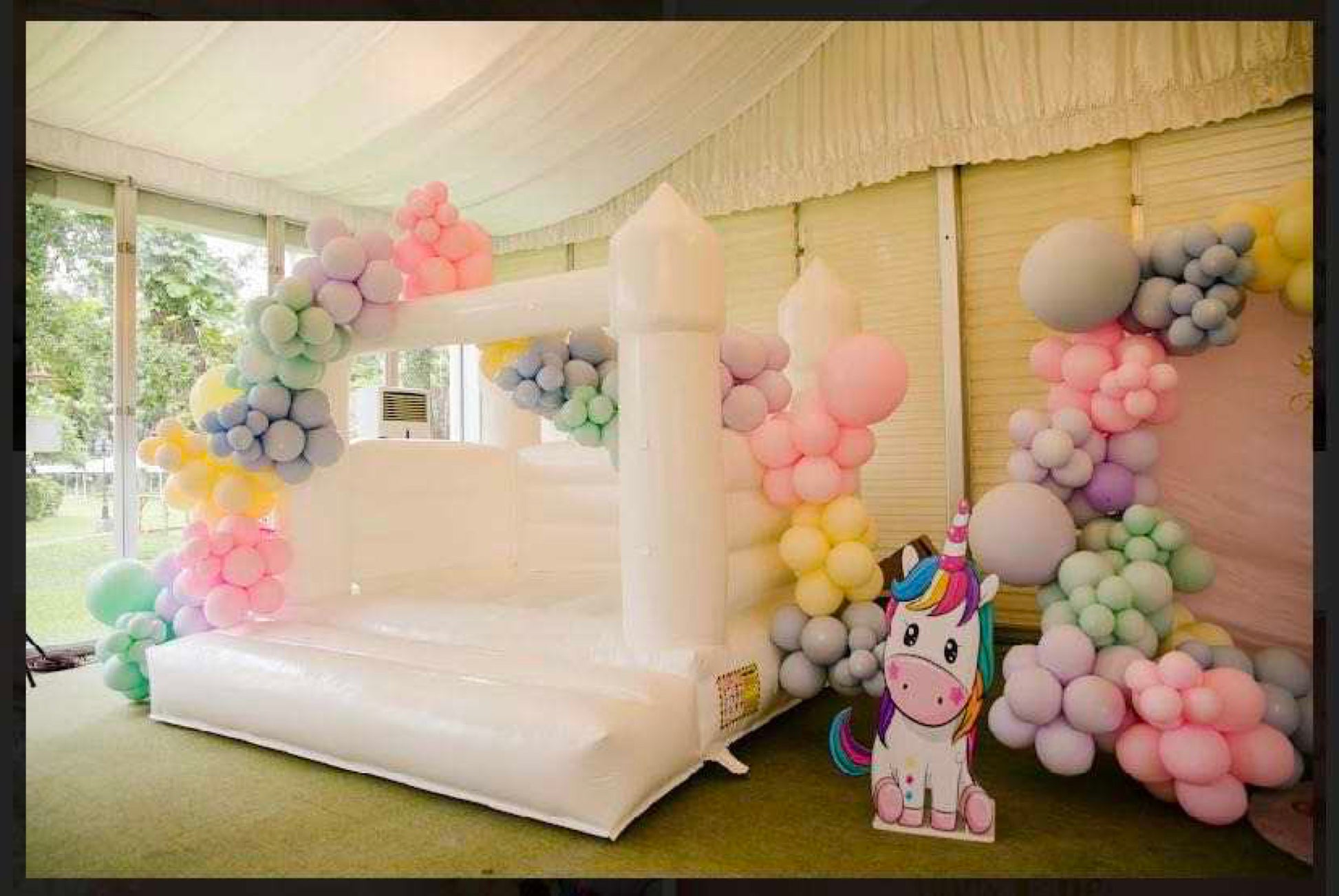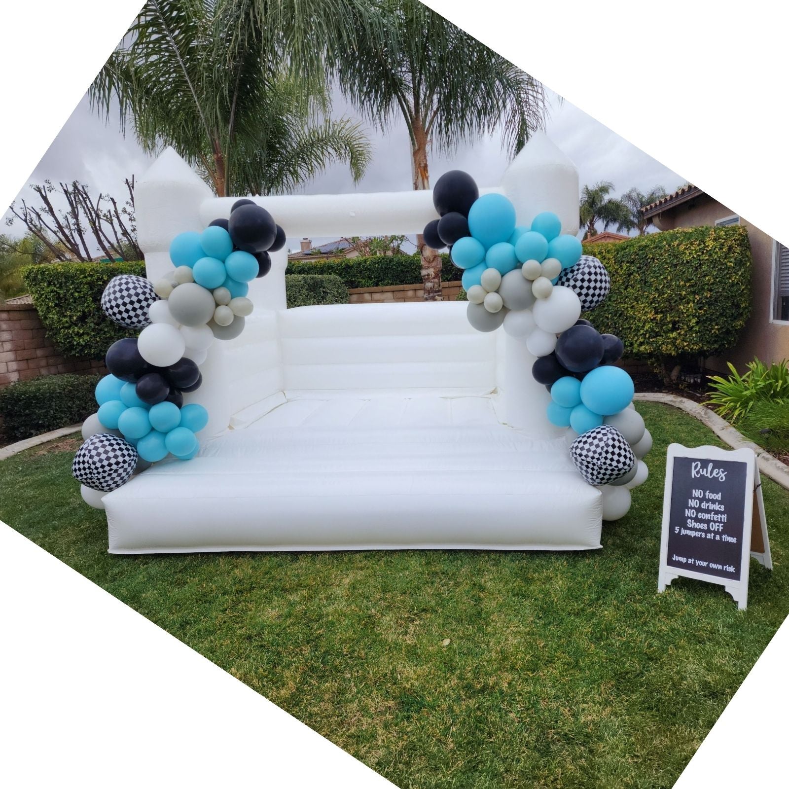 - 👫HEAVY DUTY: Our Inflatable White Bouncer made by 100% grade PVC tarpaulin which is water proof, flame retardant, UV resistant and 5 times stronger than standard nylon residential inflatables. Our inflatable white wedding bounce house is built durable for years of using.